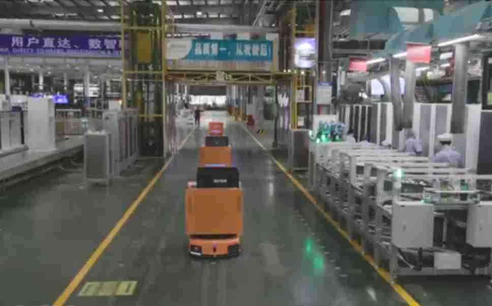 为车载冰箱物流配送打造的智能解决方案,,,包含产中物流通过潜伏举升AMR搬运至线边,,,产后成品物流智能仓储,,流程包含产中物流智能齐套入库,,,,线边安灯叫料AMR智能配送至线边,,,,成品入库、、、、出库,,,,通过无人堆高车机器人,,智能仓储管理替代人工作业管理,,,实现更高存储、、、更高效率、、、更具柔性化的解决方案。。。。